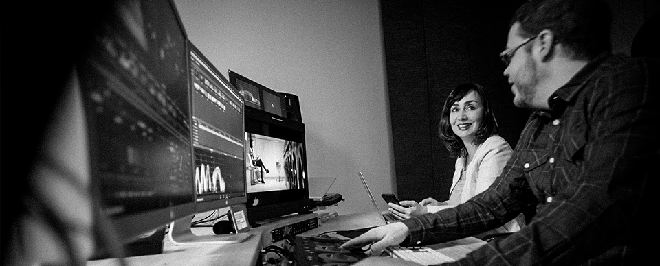 Nonlinearer Schnitt, unterstützt von einem redundanten, zentralen Speichersystem, sorgt für maximale Flexibilität und Sicherheit. Ebenso ist der Zugriff auf alle gängigen Grafik- und Animationsprogramme, wie AE, PS oder C4D, gewährleistet. Das Grading erfolgt an den neuesten Referenzmonitoren, ob SDR oder HDR, bis hin zu 4K DCI. In unserem Tonstudio ermöglichen wir Ihnen Synchronisation und Mischung bis 5.1. Am Ende folgt die Ausgabe ihres Filmes auf jedes gewünschte Format, von XDCAM bis DCP.